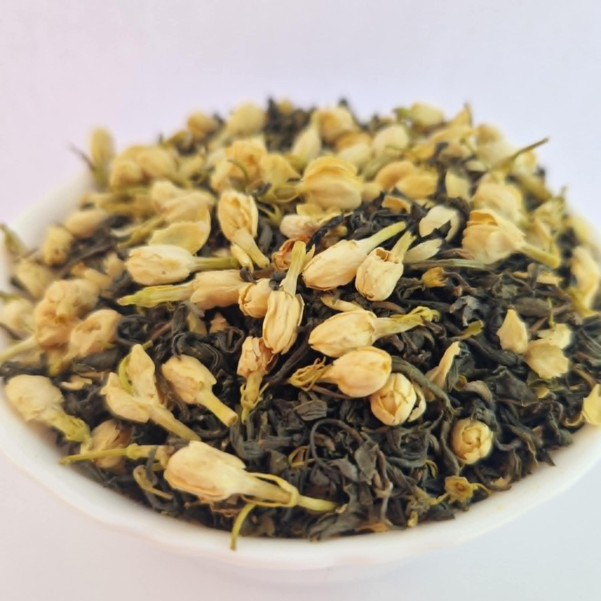 A jázminvirágos zöld tea finom zöld tealevelek és illatos jázminvirágok keveréke, amely enyhén édeskés, virágos aromájú. Koffeintartalmú, frissítő és élénkítő ital, amely harmonikusan ötvözi a zöld tea frissességét a jázmin virágos illatával.